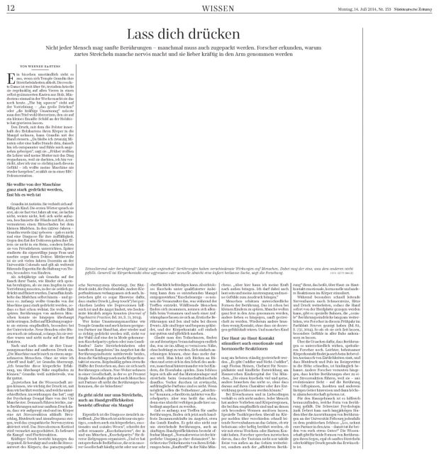 Laß dich drückenGroßer Artikel in der Süddeutschen Zeitung vom 14.07.14Im überregionalen Teil der SZ vom 14.07.14 erschien ein umfangreicher