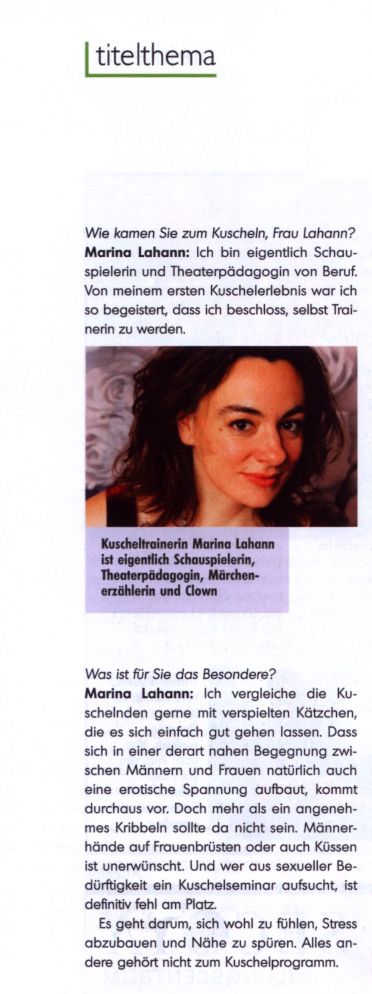 Kuschelpartys - der neue Trend / Artikel in der BIO 02/09