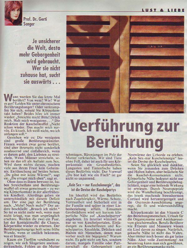 körperliche Nähe auf "Kuschelpartys" angeboten. Im Internet
